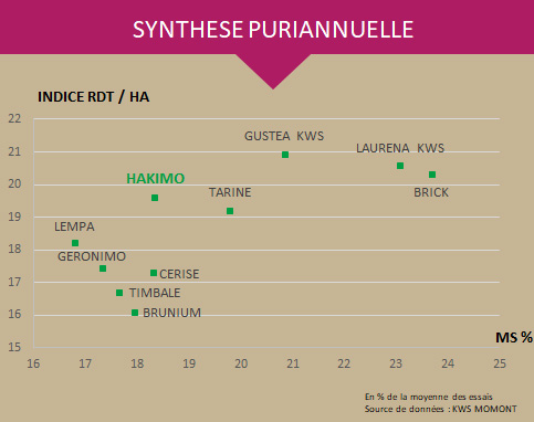 Les résultats indiqués sont issus d’essais officiels d’inscription ou de cotations effectuées par les organismes officiels, fournis à titre indicatif. Ils peuvent varier selon les pratiques culturales, les conditions climatiques et le type de sol.