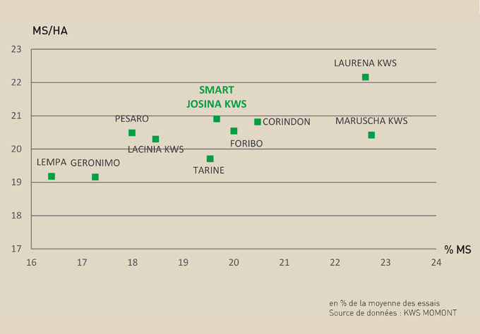 Les résultats indiqués sont issus d’essais officiels d’inscription ou de cotations effectuées par les organismes officiels, fournis à titre indicatif. Ils peuvent varier selon les pratiques culturales, les conditions climatiques et le type de sol.