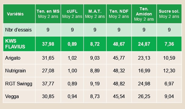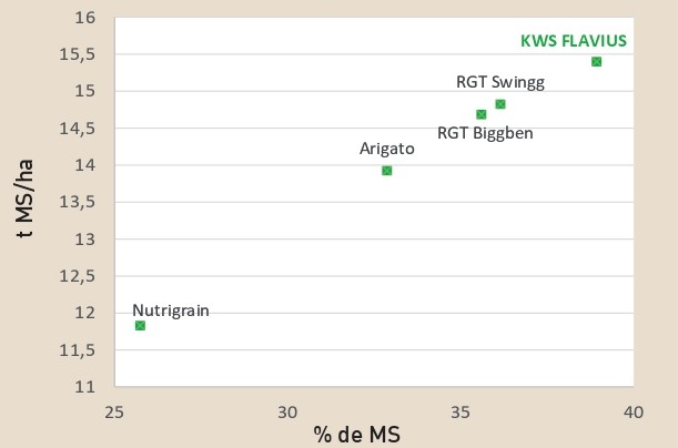 - Récolte à maturité (28/32% de MS) facilitée par la précocité